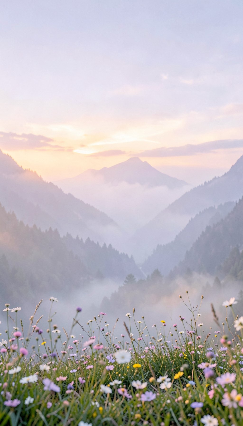 Este fondo combina montañas suaves y flores silvestres en tonos pastel, ideal para quienes buscan fondos aesthetic WhatsApp llenos de calma y frescura. Perfecto para reflejar tranquilidad y armonía en cada conversación.