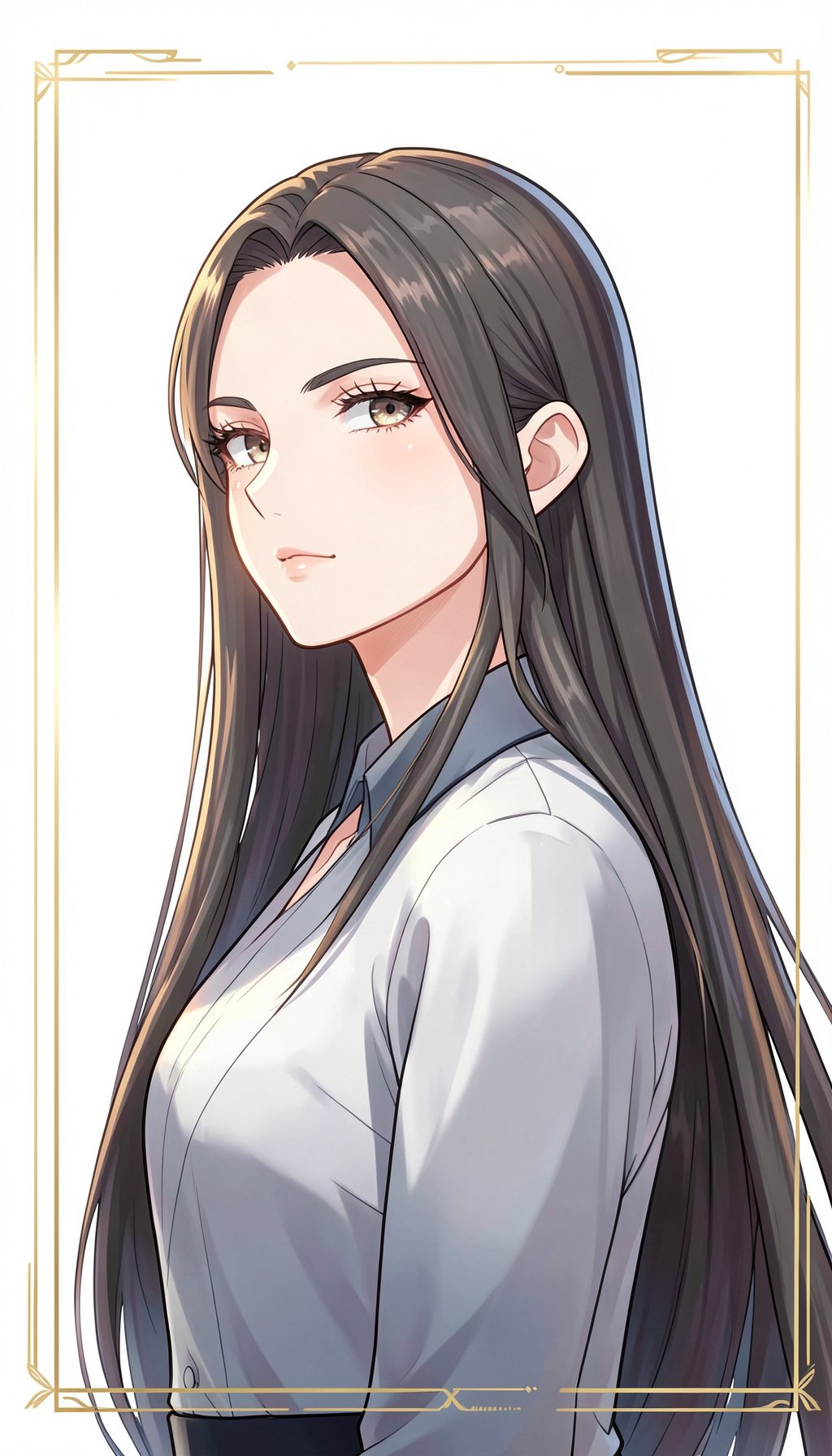 Esta imagen representa la elegancia en su máxima expresión. Su fondo sencillo y los detalles dorados aportan un toque sofisticado, ideal para quienes buscan destacar con Imágenes anime para perfil elegantes. El enfoque principal en el rostro y la composición vertical la hacen perfecta para cualquier dispositivo móvil.